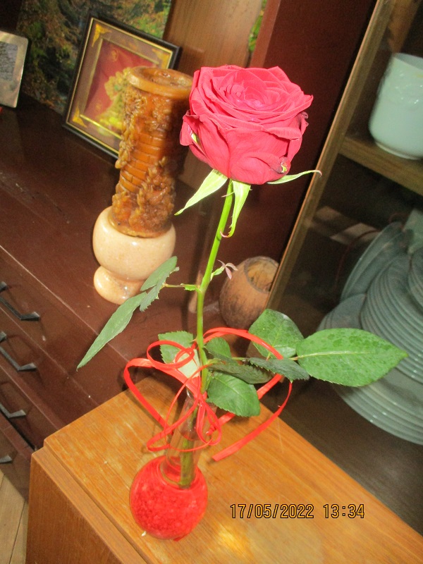 Wracam ,a na progu ...róża .Pojedyncza .I czerwona ...