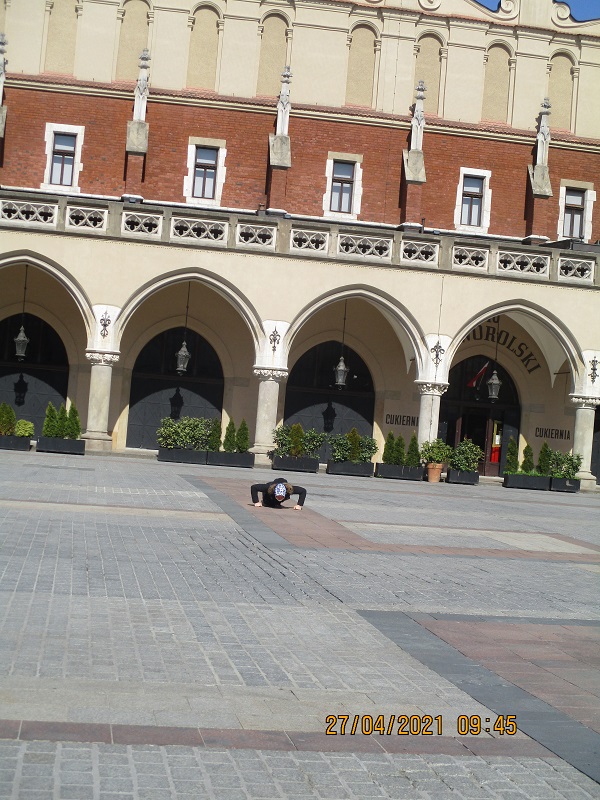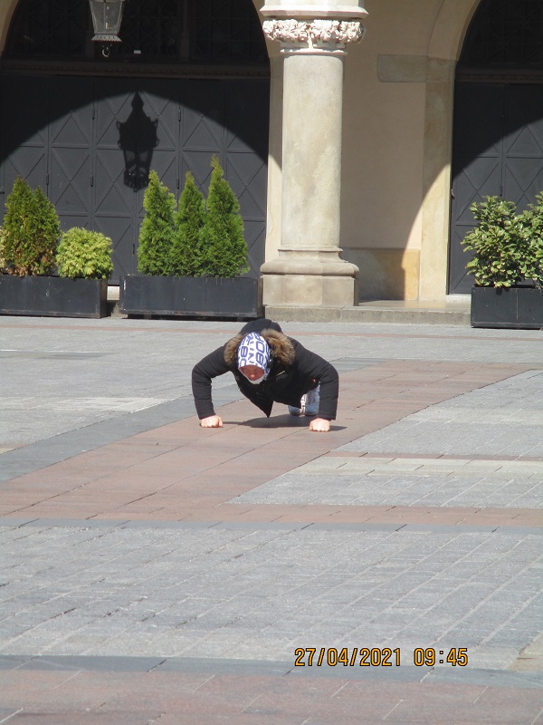 co Pan robi ?gołym okiem przecież widać .ĆWICZY.Miejsca dużo i nikogo nie omachnie .Naśladowców jakoś brak ,w tym ,co dobre nie naśladujemy .