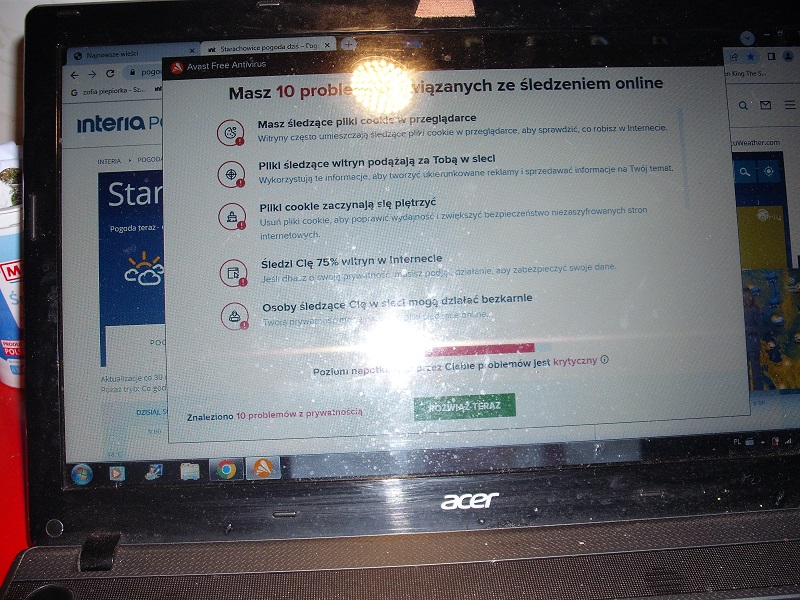 a tu ,oprócz blokowania strony (przywykłam ) wiadomość dostałam .Od Avastu .Że problemy z prywatnością mam .