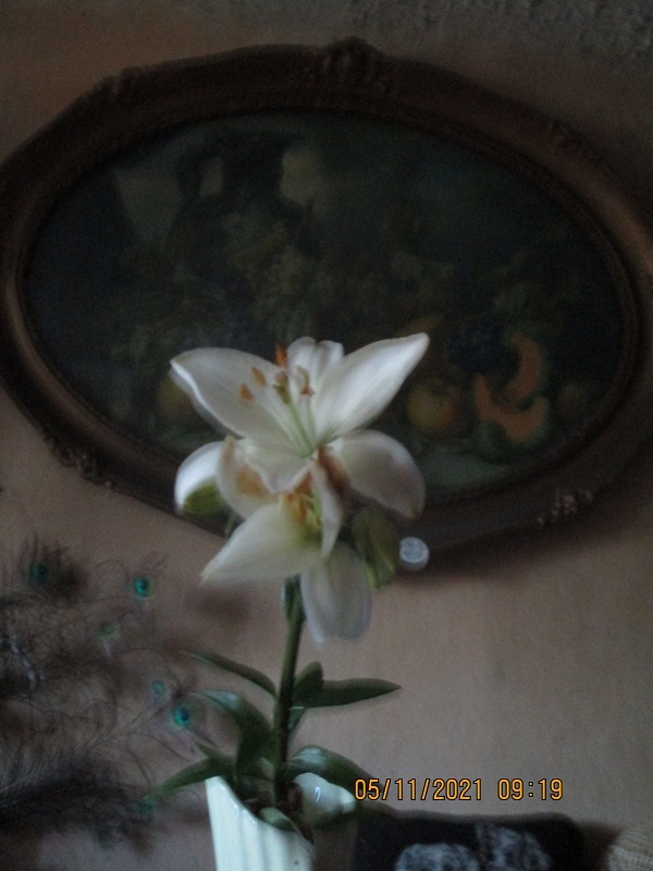 mi zakwitła .Trzeci raz w tym roku .Ta sama !gdzieś to macie opisane koło czerwca jak nabyłam drogą kupna biała lilię za 5 złotych i cieszyłam się