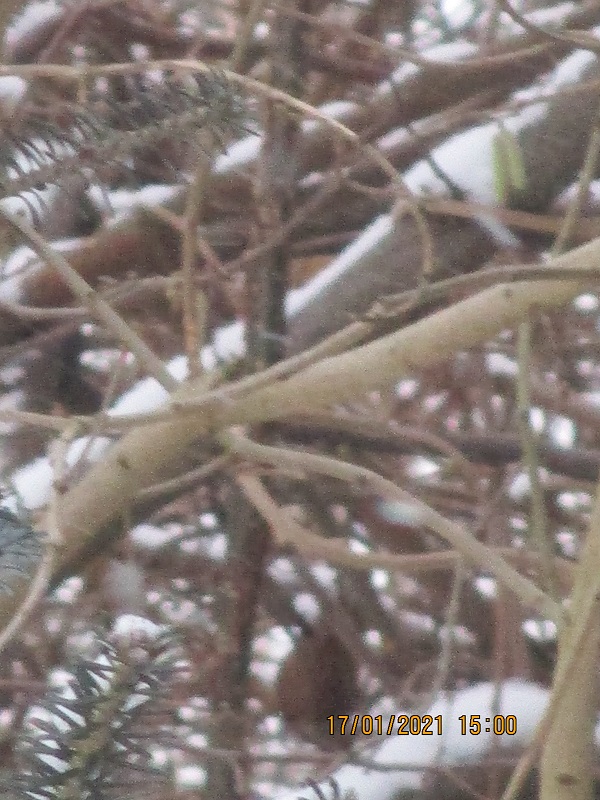 na gałązce ,na brązowej przysiadł jakiś ptak .